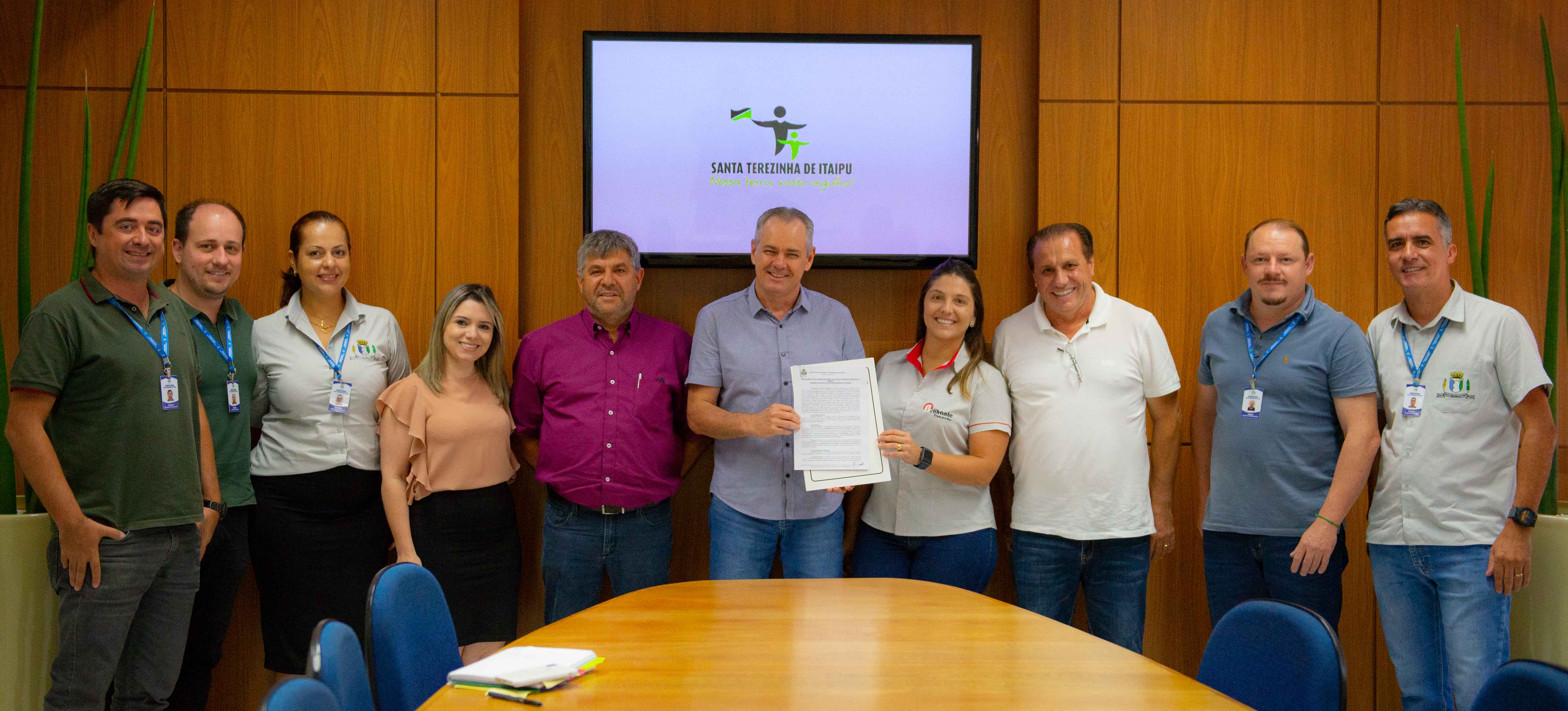 Desta vez, a Brilhante Transportes, empresa de logística que atua há 16 anos no transporte de cargas refrigeradas no Brasil e em todo o Mercosul, desliga suas atividades no ramo, em Foz do Iguaçu e aporta suas expectativas de crescimento em Santa Terezinha de Itaipu. A assinatura da concessão para uso de área de 24.113,34 m² aconteceu na manhã de segunda-feira, 6, na sala de reuniões do Paço 3 de Maio, na presença do prefeito Cláudio Eberhard, da diretora financeira da empresa, Jéssica Sartori Alexandre e dos diretores da Brilhante Transportes, Altair Sartori e Adilmar Sartori.