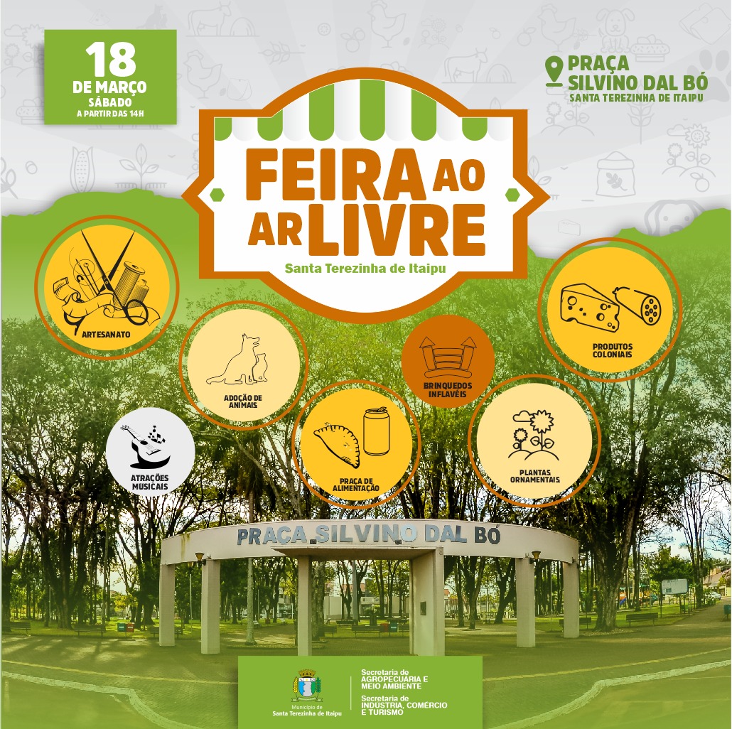 A Feira ao Ar Livre é uma realização da Administração Municipal de Santa Terezinha de Itaipu, por meio das Secretarias de Agropecuária e Meio Ambiente e Indústria, Comércio e Turismo.