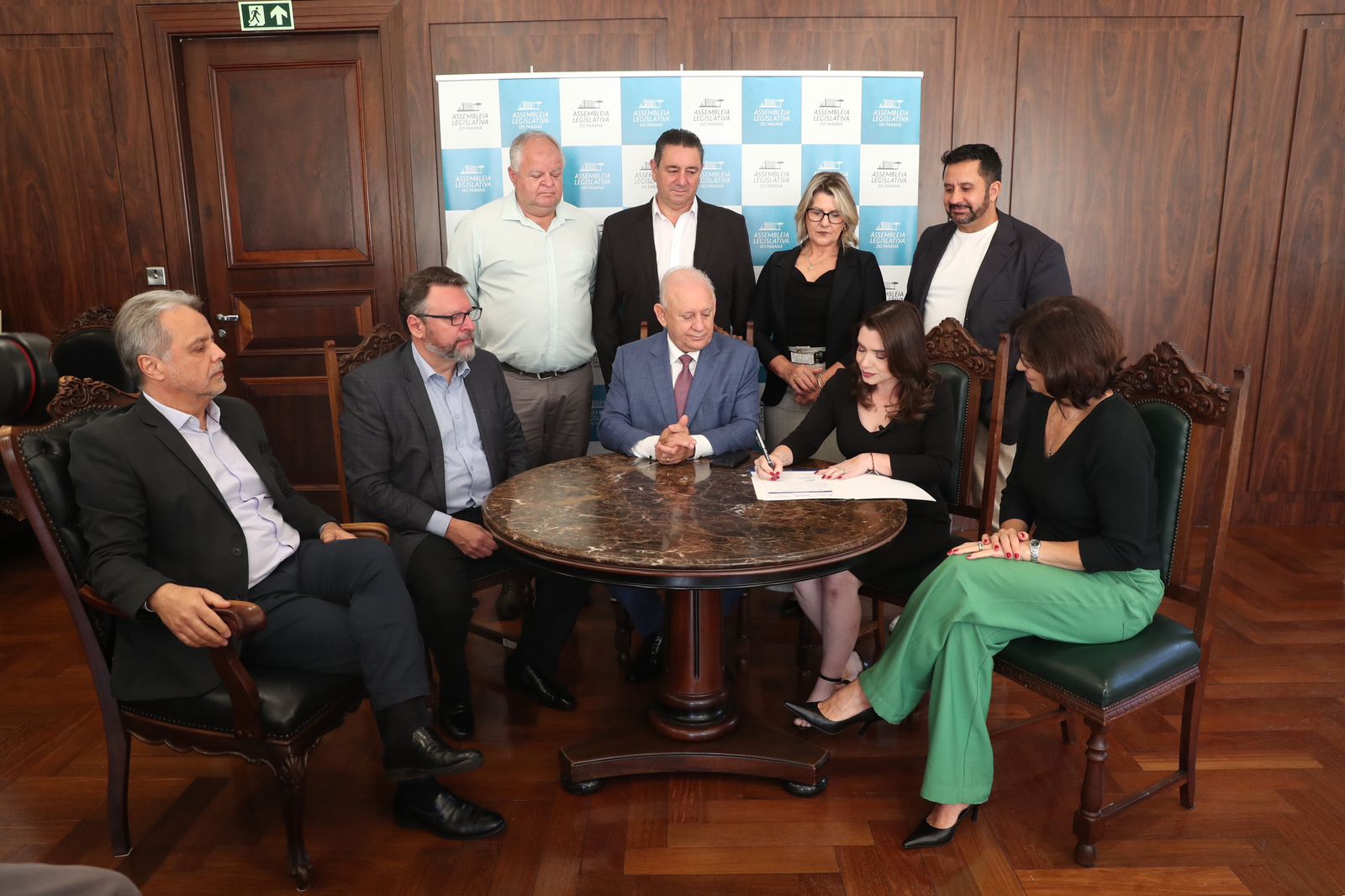 Ainda na manhã desta segunda-feira, na Assembleia Legislativa do Paraná, em Curitiba, o presidente da Casa, o deputado estadual Ademar Traiano, e a prefeita Karla Galende, e o presidente da Sanepar Wilson Bley Lipski assinaram convênio que vai ampliar o sistema de abastecimento de água no município. O investimento, articulado pela Administração Municipal junto ao deputado, passa de R$ 2,1 milhões. A previsão é da geração de 60 empregos diretos e 302 indiretos, durante a obra.