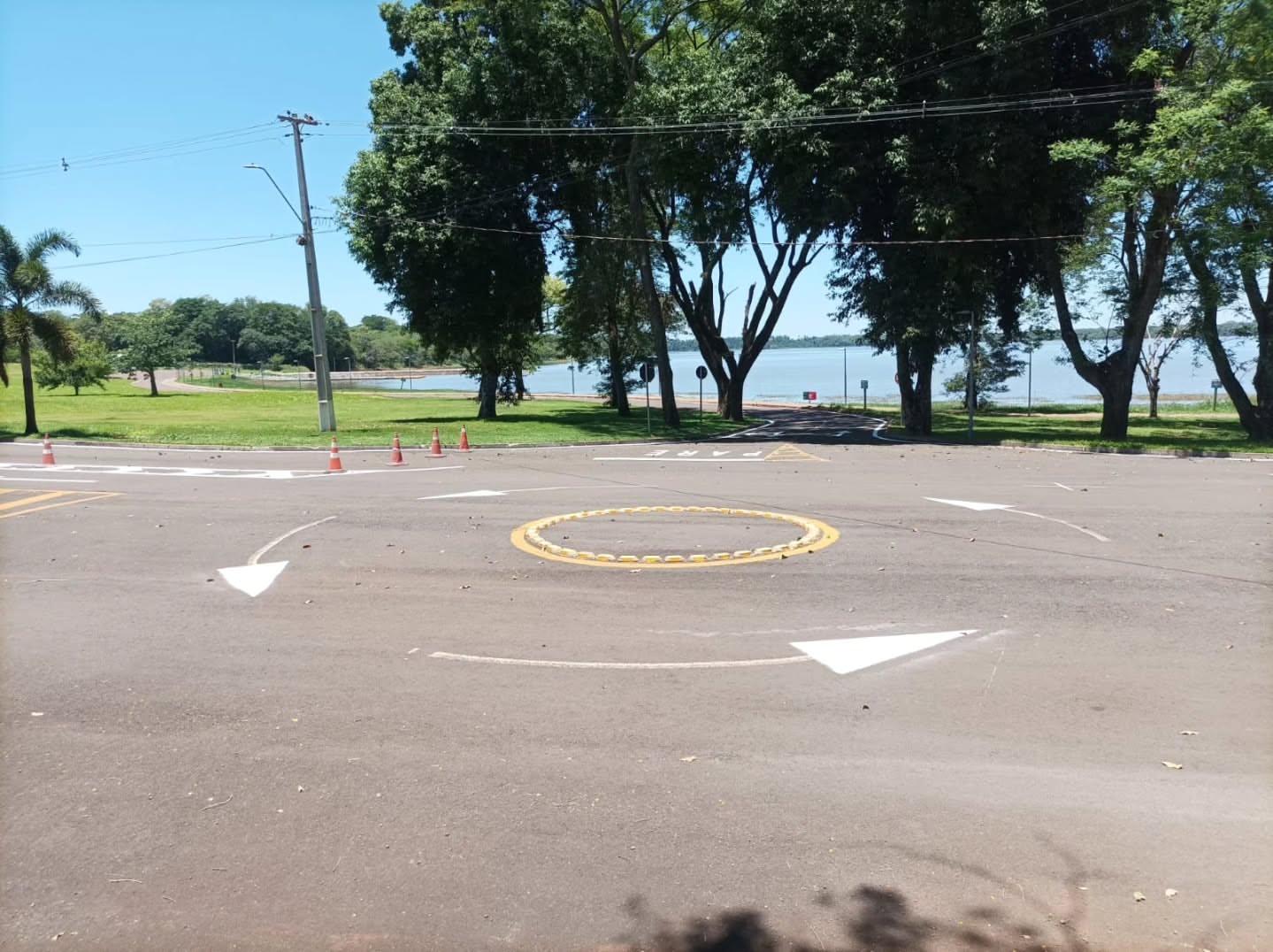 A Prefeitura de Santa Terezinha de Itaipu segue avançando nos preparativos para a temporada de verão 2025/2026. Nesta semana, as equipes concluíram a pintura e renovação da sinalização viária no Terminal Turístico Alvorada de Itaipu – a nossa Prainha.