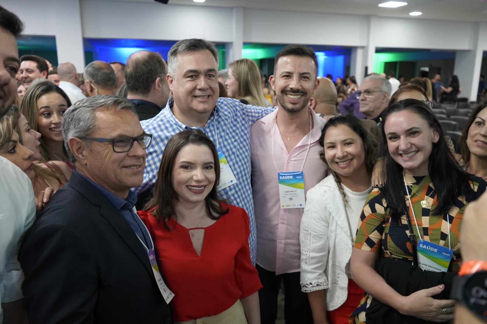 A prefeita Karla Galende, juntamente com o vice Vanio Morona, presidente da Câmara de Vereadores, Valdir Sauthier, vereadores Maurinho de Oliveira, Rogério Matendal, secretário de Saúde, Fábio de Mello, Coordenadora Médica, Aline Outa, diretora de Saúde, Liziane Diedrich, diretora do Centro de Especialidades, Margarete Dionísio, diretora de Urgência e Emergência, Edilaine Magagnin, Diretora do departamento de Saúde Bucal, Daiane Wichinhewski e equipe técnica da saúde, participou na quarta-feira, 6, do evento Saúde em Movimento, promovido pela Secretaria de Estado da Saúde (Sesa), e que reúne de 5 a 8 de dezembro, gestores de todo o Estado do Paraná, em Foz do Iguaçu. O encontro tem como objetivo atualizar os gestores, prestadores e trabalhadores da área em ações estratégicas para o fortalecimento da Rede de Atenção à Saúde do Estado.