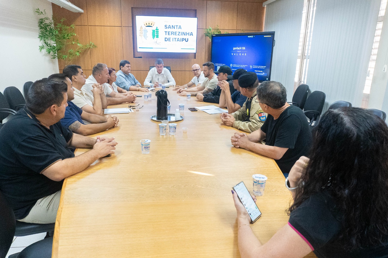 Atendendo a uma convocação do prefeito Antonio Luiz Bendo (Bim), foi realizada nesta quinta-feira (19), na sala de reuniões da Prefeitura de Santa Terezinha de Itaipu, uma reunião com representantes das forças de segurança e membros do Conselho Comunitário de Segurança (CONSEG) para tratar de ações voltadas ao fortalecimento da segurança pública no município.