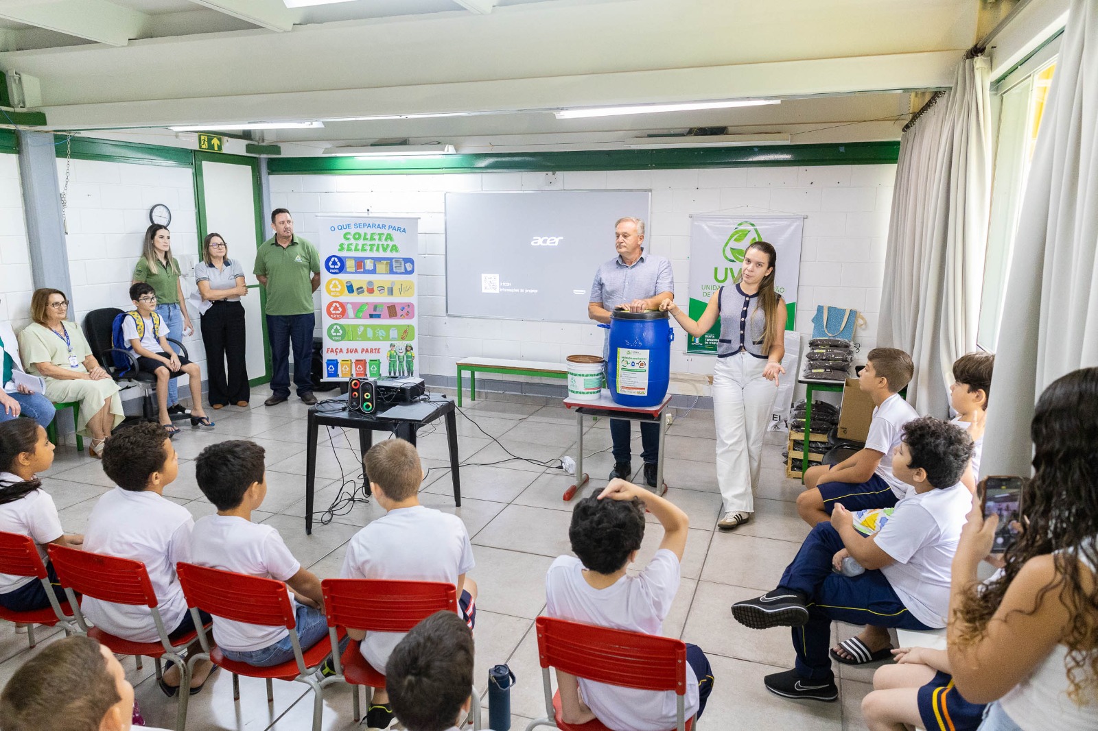 A ação acontece por meio do diretor de Resíduos, Arlênio Boaroli, com a equipe técnica da Secretaria de Agropecuária e Meio Ambiente, em parceria com a Secretaria de Educação.